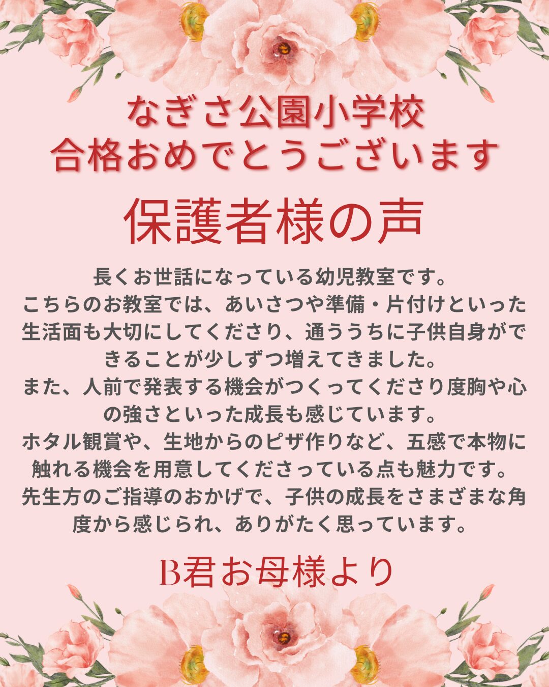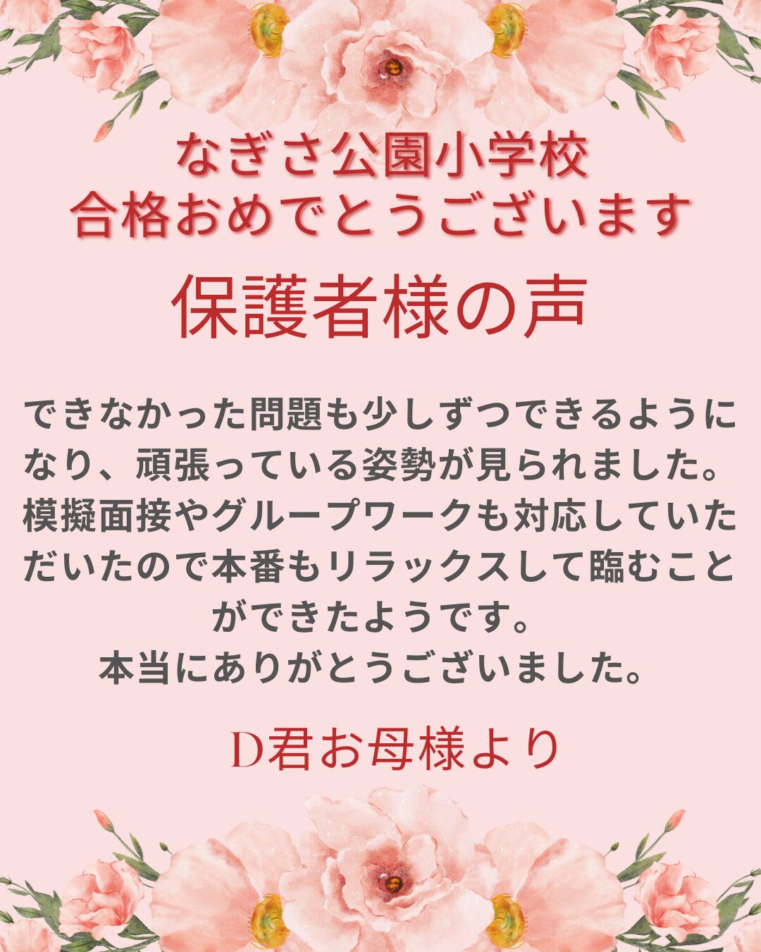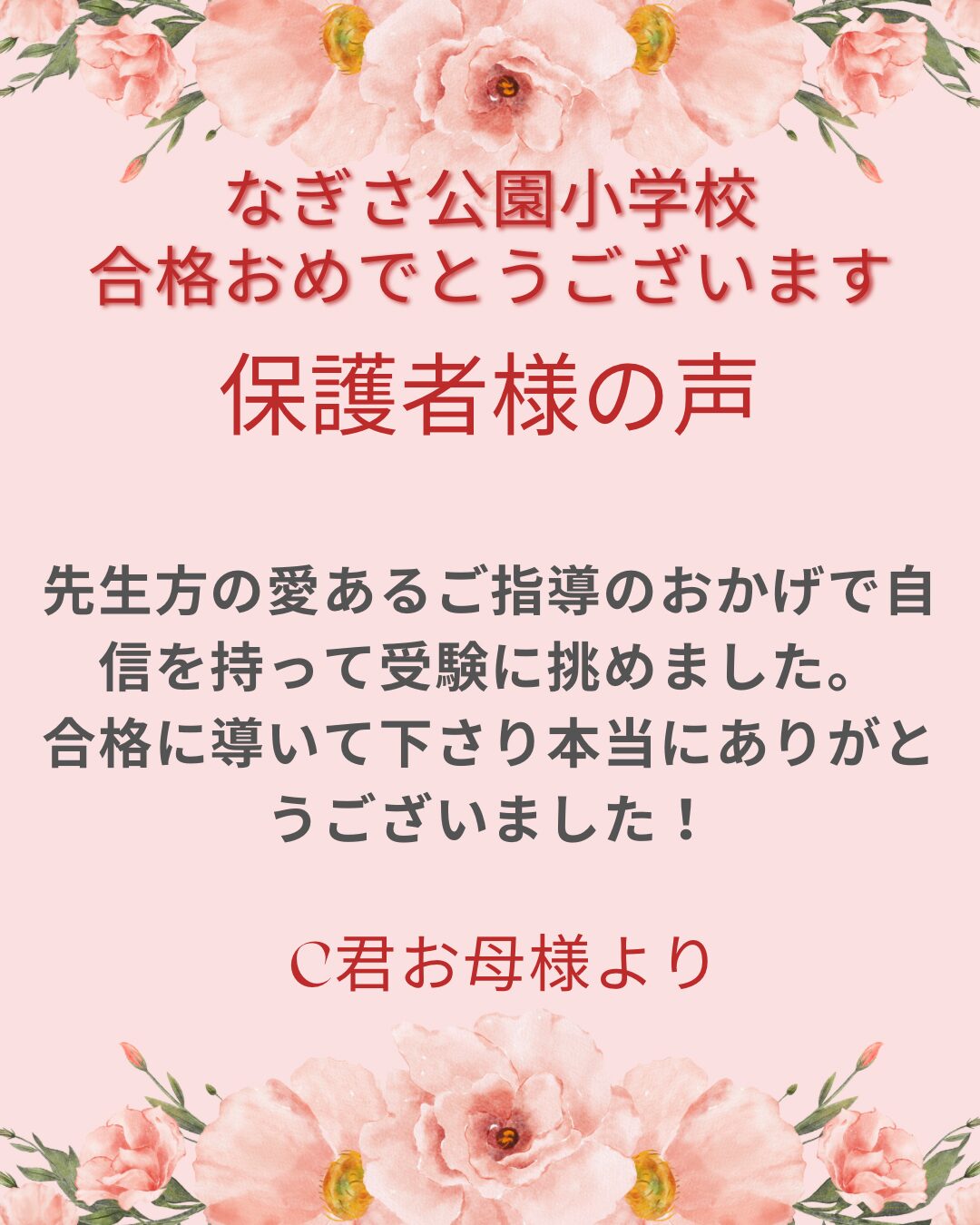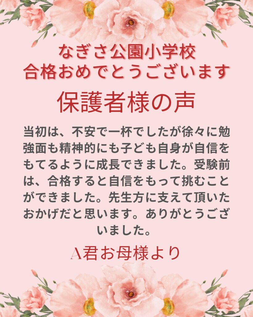 なぎさ公園小学校合格・保護者様の声